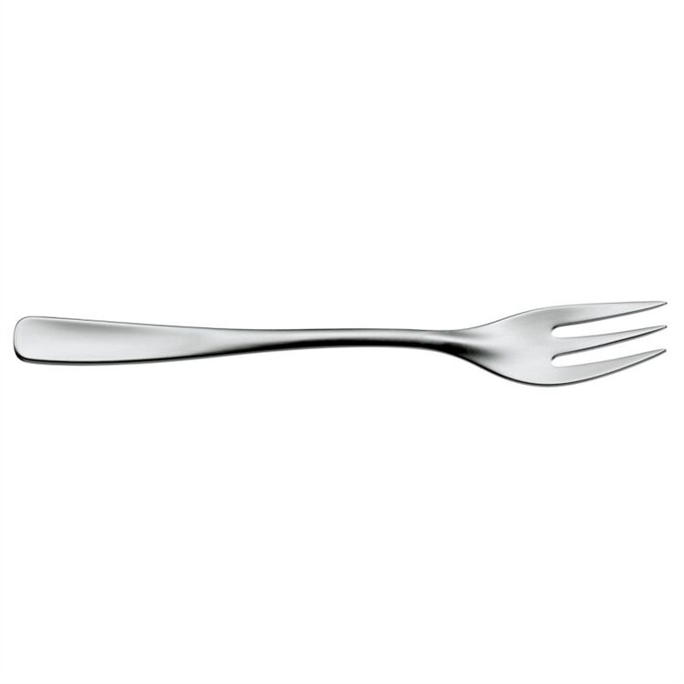 Sie ist die kleine Schwester der Menuegabel: die meist dreispitzige Kuchengabel. Häufig mit einem verstärkten und angeschrägten linken Zinken ausgestattet, portioniert sie Kuchen, Torten oder Gebäck. Auch Obst und Dessertspeisen lassen sich mit einer Kuchengabel leicht genießen. Die kleinen Gabeln erhalten Sie als Einzelstück oder als Bestandteil eines Sets.Bei diesem Besteck vereinen sich Gegensätze: So ist der Hals des Stiels zierlich und sanft gewölbt das Ende hingegen breit und flach. Der plastisch betonte Übergang zum Vorderteil fungiert als hübsches Dekorelement. Neben diesen optischen Merkmalen zeichnet sich das Besteck Ambiente außerdem durch eine aufwendige Materialverarbeitung und eine angenehme Haptik aus. Es ist aus poliertem Cromargan protect® gefertigt was bedeutet dass alle Teile extrem kratzbeständig sind und daher selbst nach Jahren noch aussehen wie neu. Dank seiner Unkompliziertheit eignet sich das WMF Besteckmodell das von Designer Peter Ramminger entworfen wurde für den alltäglichen Gebrauch und setzt ebenso auf einer festlich gedeckten Tafel stilvolle Akzente.