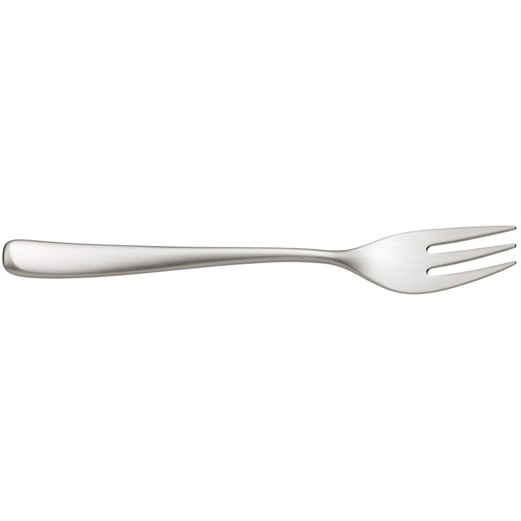 Sie ist die kleine Schwester der Menuegabel: die meist dreispitzige Kuchengabel. Häufig mit einem verstärkten und angeschrägten linken Zinken ausgestattet, portioniert sie Kuchen, Torten oder Gebäck. Auch Obst und Dessertspeisen lassen sich mit einer Kuchengabel leicht genießen. Die kleinen Gabeln erhalten Sie als Einzelstück oder als Bestandteil eines Sets.Seine ungewöhnliche Länge, seine schlanke Form und seine seidig mattierte Oberfläche fallen sofort ins Auge. Keine Frage: Das WMF Besteck Vision ist etwas Besonderes. Designer Peter Bäurle schuf ein gleichermaßen massives wie plastisches Besteck mit ausgewogenen Proportionen und asymmetrischer Facette am Stielende. Ein Hingucker ist das Messer mit eingesetzter geschmiedeter Klinge: Es lässt sich liegend oder auf der Klinge stehend eindecken. Sehr stilvoll wirkt Ihr Gedeck mit den vielen passenden Servier- und Ergänzungsteilen.
