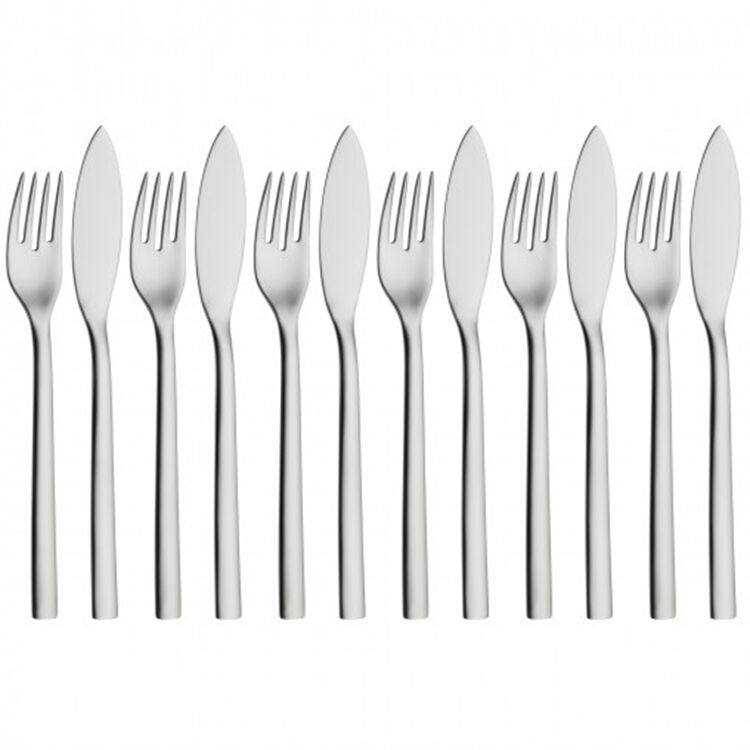 Für Liebhaber frischer Fischgerichte ist das Fischbesteck eine gleichermaßen hilfreiche wie stilvolle Ergänzung des Standardbestecks. Anders als Fleisch wird der Fisch auf dem Teller nicht geschnitten, sondern durch sanften Druck mit dem Fischbesteck geteilt und portioniert. Das Fischmesser dient dabei der Trennung von Gräten. Die Fischgabel wiederum ist etwas breiter als eine Menuegabel und hat kürzere Zinken - beides dient der besseren Aufnahme des Fischs.Für die Kollektion Nuova entwarf Designerin Jutta Keil Spezialbesteck für köstliche Momente - vom Brunchmesser über den Kuchenheber bis zum Salatbesteck. Sie kommen zum Einsatz je nach Situation und Gusto: Eierlöffel für wachsweiche Frühstückseier Lasagneheber für herzhafte Nudelaufläufe Espresso- und Latte macchiato-Löffel für italienische Kaffeespezialitäten. Mit den Zangen der Kollektion setzte sich Designer André Stocker kreativ auseinander und entwickelte eine Universal- und eine Pastazange sowie die Spargel- und die perforierte Servierzange. Letztere greift zum Beispiel nach Mozzarella und Tomaten - die Marinade bleibt auf dem Teller. Das Spezialbesteck und die formstabilen Zangen sind aus poliertem Cromargan gefertigt im schlichten zeitlosen Design passen sie zu jedem Tischgeschirr. WMF bietet die Besteckteile einzeln oder im Set zur Reinigung kommen sie in die Spülmaschine.