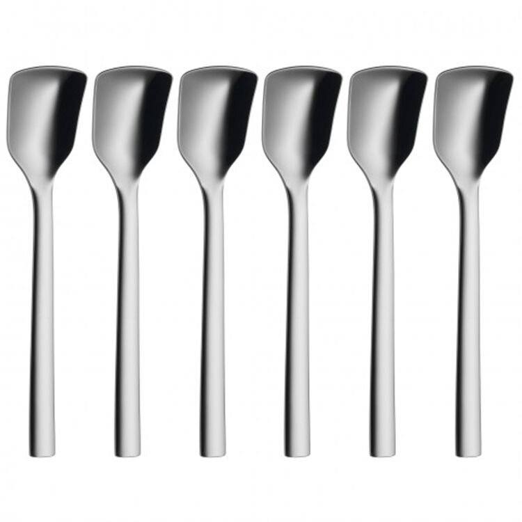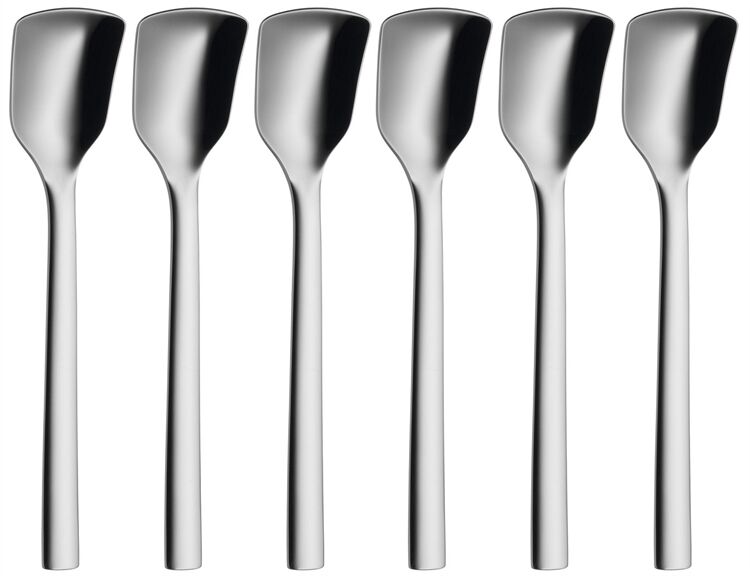 Spezialbesteck erleichtert den Umgang mit Speisen! Noch schöner ist es, wenn auf einem gedeckten Tisch sämtliche Besteckteile zusammen passen. Die Besteck- und Servierteil Serie Nuova in einem ansprechenden und zeitlosen Design möchte genau dies bezwecken: der passende Kuchenheber zu den Kaffeelöffel und Kuchengabeln. Die polierte Cromargan® Qualität in Edelstahl Rostfrei 18/10 macht die Artikel formstabil, beständig gegen Speisesäuren und natürlich spülmaschinenfest.Für die Kollektion Nuova entwarf Designerin Jutta Keil Spezialbesteck für köstliche Momente - vom Brunchmesser über den Kuchenheber bis zum Salatbesteck. Sie kommen zum Einsatz je nach Situation und Gusto: Eierlöffel für wachsweiche Frühstückseier, Lasagneheber für herzhafte Nudelaufläufe, Espresso- und Latte macchiato-Löffel für italienische Kaffeespezialitäten. Mit den Zangen der Kollektion setzte sich Designer André Stocker kreativ auseinander und entwickelte eine Universal- und eine Pastazange sowie die Spargel- und die perforierte Servierzange. Letztere greift zum Beispiel nach Mozzarella und Tomaten - die Marinade bleibt auf dem Teller. Das Spezialbesteck und die formstabilen Zangen sind aus poliertem Cromargan® gefertigt, im schlichten, zeitlosen Design passen sie zu jedem Tischgeschirr. WMF bietet die Besteckteile einzeln oder im Set, zur Reinigung kommen sie in die Spülmaschine.- Inhalt: 6 Eisschaufel. Länge: 14,0 cm. | Artikelnummer: 129156640- Material: Cromargan® Edelstahl 18/10 poliert. Rostfrei, spülmaschinenfest, formstabil, hygienisch, säurefest und unverwüstlich.- Design: Jutta Keil.- In hochwertiger Geschenkverpackung.- Kollektion Nuova