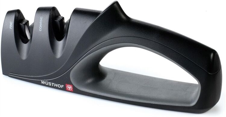 Die einfachste Art, Messer zu schärfen und scharf zu halten. Der 2-stufige Messerschärfer mit Karbid- und Keramikstäben eignet sich vor allem für diejenigen, die sich an das Schärfen mit Wetzstählen oder Abziehsteinen (noch) nicht herantrauen. Mit diesem Messerschärfer wird schnell ein gutes Ergebnis erzielt. Denn das Messer wird einfach an die Führung angelegt und mehrmals durchgezogen. Eine Stufe wird dabei für den Grobschliff (bei stumpfen Klingen) verwendet, eine zweite Stufe für den Feinschliff (bei grob geschliffenen oder mittelscharfen Klingen).