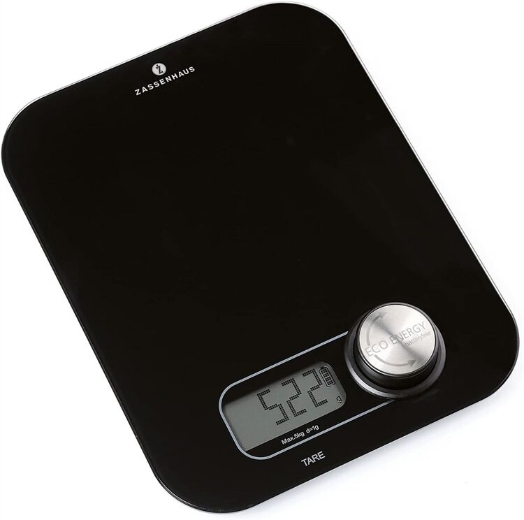 Kunststoff / Glas, hochwertige digitale Küchenwaage mit Dynamo - immer einsatzbereit, extrem lange Lebensdauer, Tragkraft max. 5kg, Feinteilung 1,0 g, Sensor-Touch-Bedienfeld