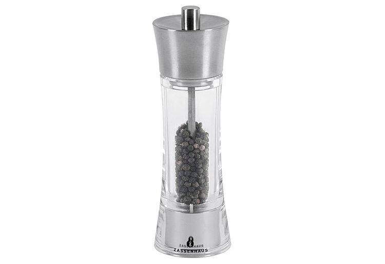 mit dem original Zassenhaus-Qualitätsmahlwerk aus Hochleistungs-Keramik, perfekte Mahlgradeinstellung von pulverfein bis grob gemörsert, Edelstahl / Acryl