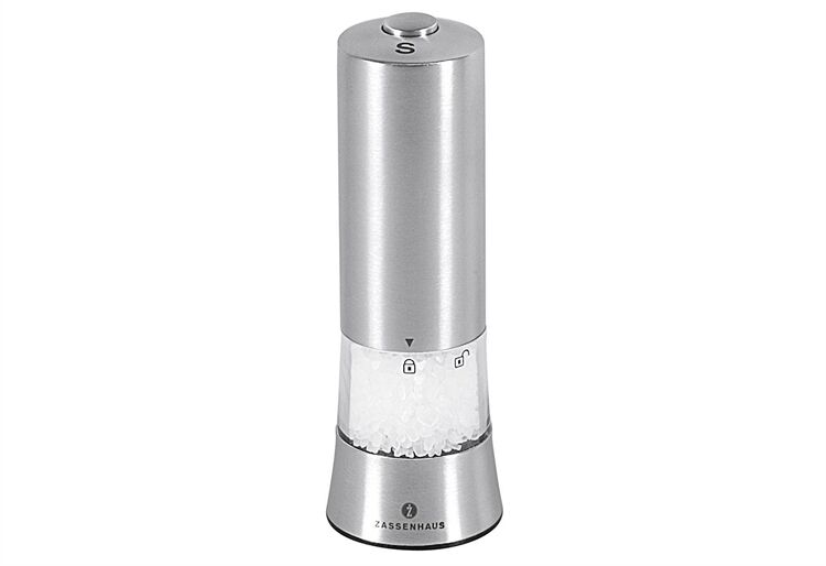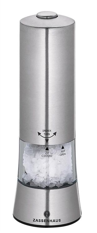 elektrische Mühle mit dem original Zassenhaus-Qualitätsmahlwerk aus Hochleistungskeramik, perfekte Mahlgradeinstellung von pulverfein bis grob gemörsert, mit LED Licht, inkl. Batterien