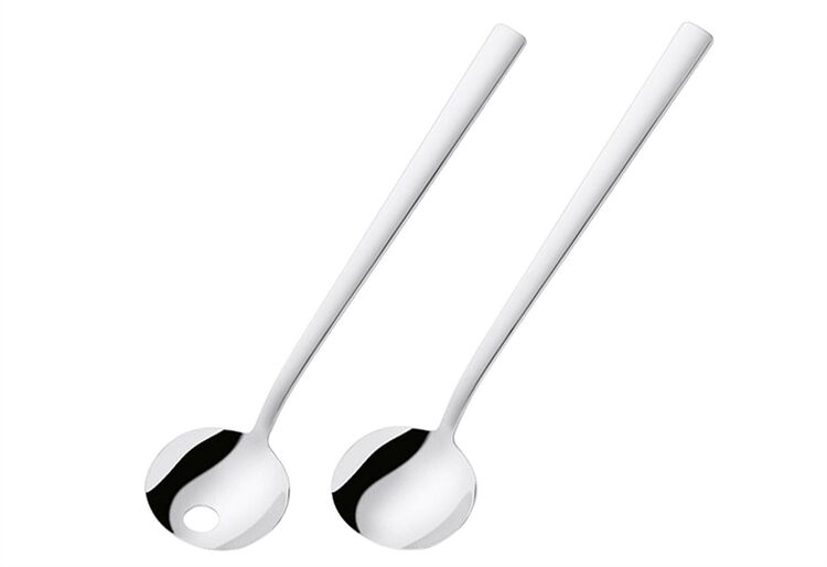 Das edle 2-teilige Salatbesteck aus der Serie ZWILLING Dinner bringt Eleganz auf die gedeckte Tafel. Jedes Grundbesteck wird mit diesem Spezialbesteck aus poliertem 18/10-Edelstahl harmonisch ergänzt. In der Stiellänge ist das Salatbesteck von ZWILLING auf handelsübliche Vorlegeplatten und Salatschüsseln abgestimmt. Mit dem Salatlöffel können Sie auch heißes Gemüse auftragen. Die runde, breite Gabelform belässt Salatblätter optisch ansprechend intakt, so dass alles appetitlich aussieht. Nach Gebrauch lässt es sich an einer Öse platzsparend aufhängen. Mit diesem praktischen Salatbesteck ergänzen Sie Ihr bereits bestehendes Besteck optimal.
